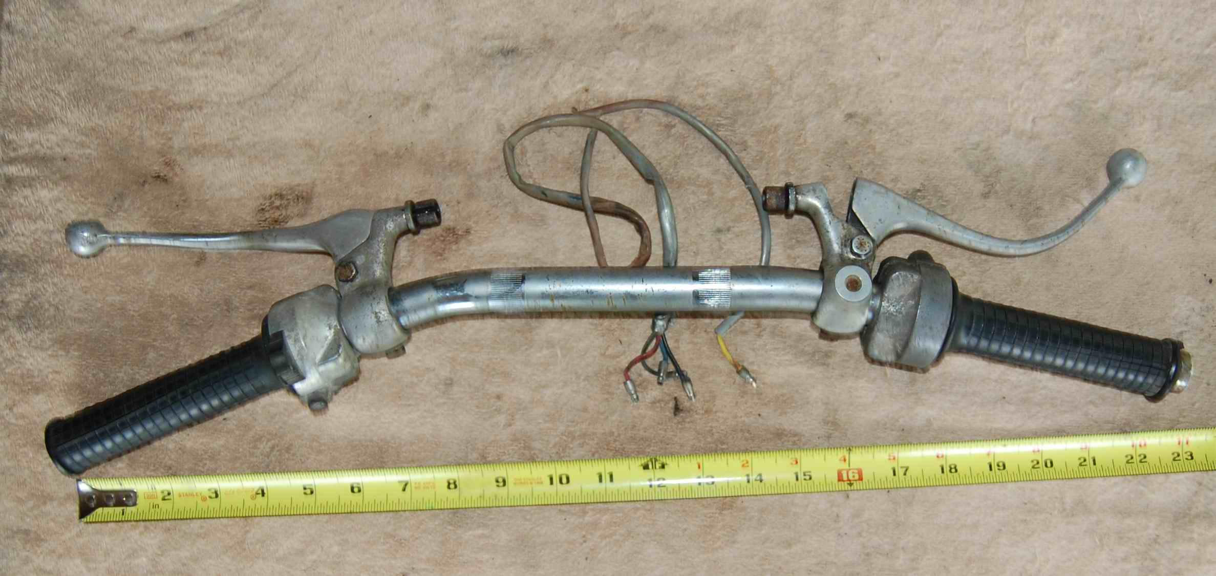 as to bars mine measure 23" tip to tip with a bit of pullback, a bit more on left side than right...this bike does have a history...I sat on it for awhile on a couple of occasions before I started disassembling (hey the remaining cracked tank badge does say "Dream") and it felt perfectly familiar after 35 years...everything fell right to hand. so i guess i'll put it back together like it was for now, let ground-down ball on bent clutch lever, weirdly curved brake lever, and scuffed end of throttle rubber remain as part of bike's charm. And maybe for good luck? Anyway, I'm shooting for a presentable rider, not a show bike.