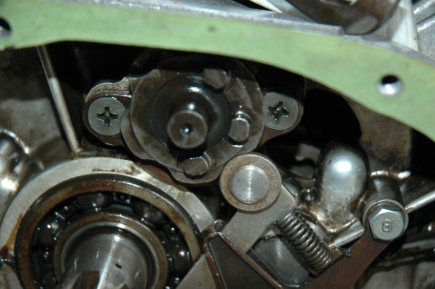 You have installed the shift drum keeper from the wrong side of the drum and the drum and keeper aren't going to last long unless you install it from the top of the case side of the drum. ...........lm