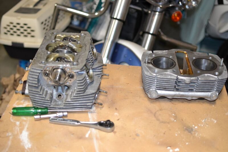 Geoff - I had a little catch in my heart when I read about your accident with the angle grinder. What an angry little tool. I too have learned to listen to that little voice that says, "You shouldn't be doing this. Something bad is about to happen." Learned it more than once I'm afraid. It sounded bad enough but I'm glad you weren't hurt worse. Progress on the project: Got the jugs and the head back and machinist says they are ready to go. I ordered some of the cylinder head washers from Partzilla. Not copper but I trust they will work OK. Finally broke down and bought a jug of Evaporust to see if will work. I put in a gallon and have been rotating the tank. I think it is working! Cleaned up and evaluated the handlebar controls. That little metal ball is a bugger to get back in and I wasn't real sure which side of the mechanism it fit. Now I'm researching options for heat shrinking the wire(s) from the controls. The original shrink wrapping, cables, etc., were beyond bad. Set aside the Scrambler handlebars that came with the bike and put on a pipe handlebar. I like that look better. Now that the motor parts are back that's what I'll tackle next. Any comments or advice is greatly appreciated.