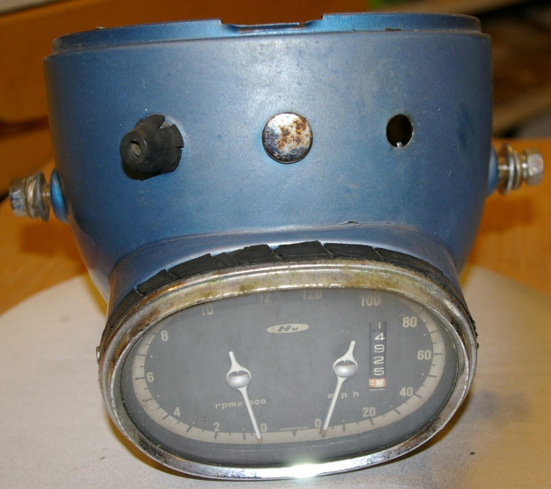 The boots on the speedo back-lights have melted? It's hard to imagine how that happened. And the speedo gasket will probably fall apart in my hands when I remove it. I haven't yet tried casting rubber, but when I do, this will be one of the first items to cast. In the meantime, some black foam weatherstripping will likely have to do.