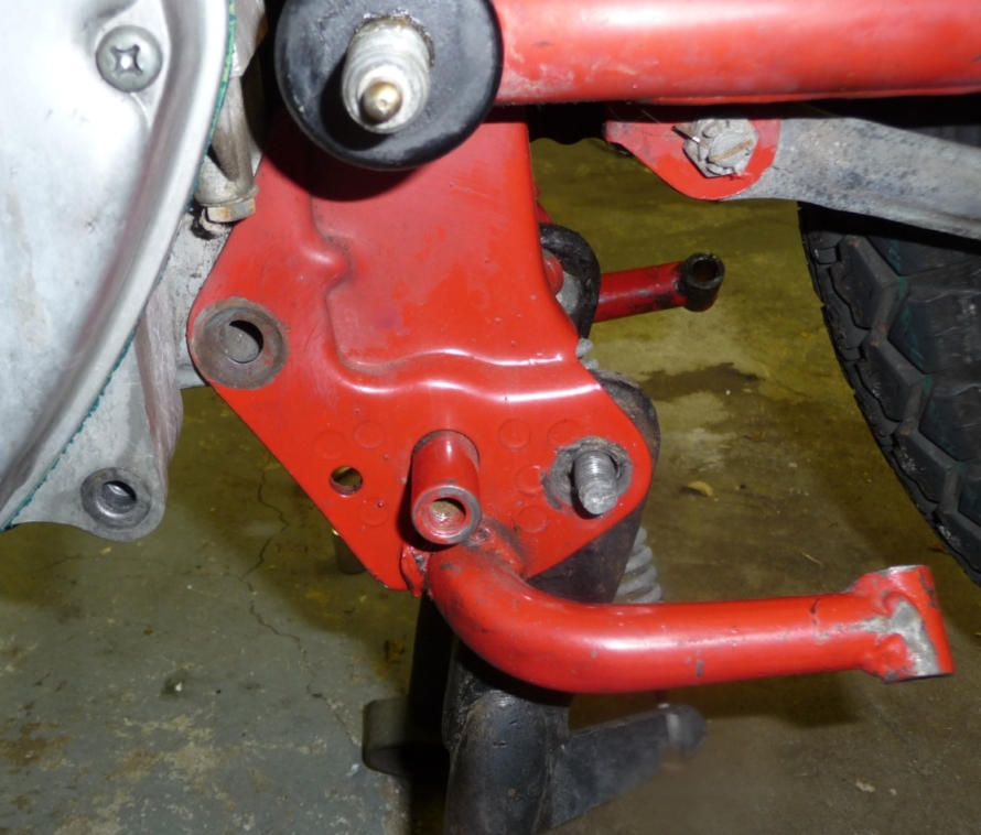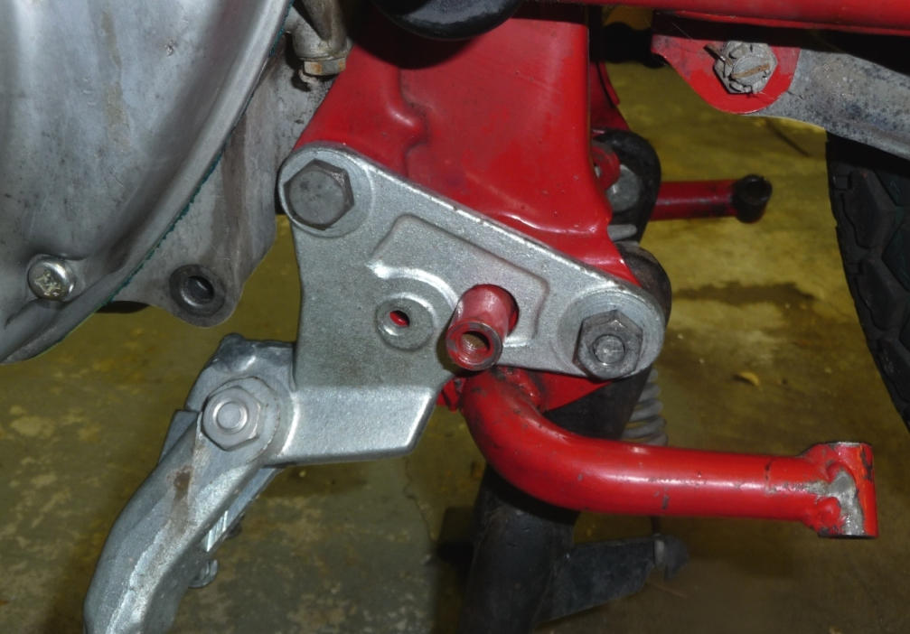 Side stand in place. 6mm bolt added later in small empty hole.