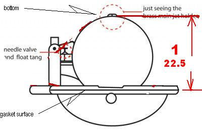 That should make the distance from the gasket surface to the bottom of the float 22.5 mm.