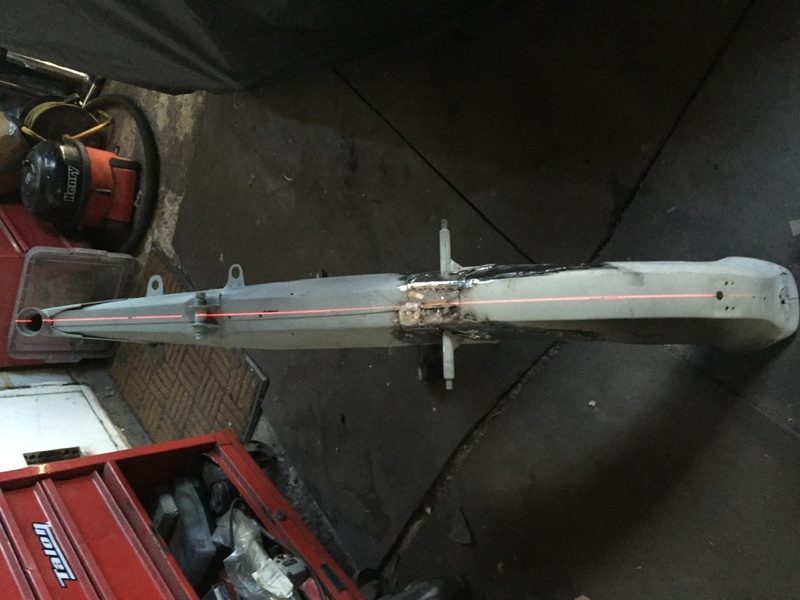 Even though I replaced the rot in four stages to limit distortion when I checked the mudguard it was slightly twisted. I made sure the frame was perfectly vertical then marked the centre of the frame before running a laser along it. At this stage, without the second skin in place, I could just pull the mudguard by hand until it was straight before I fit the inner sections.