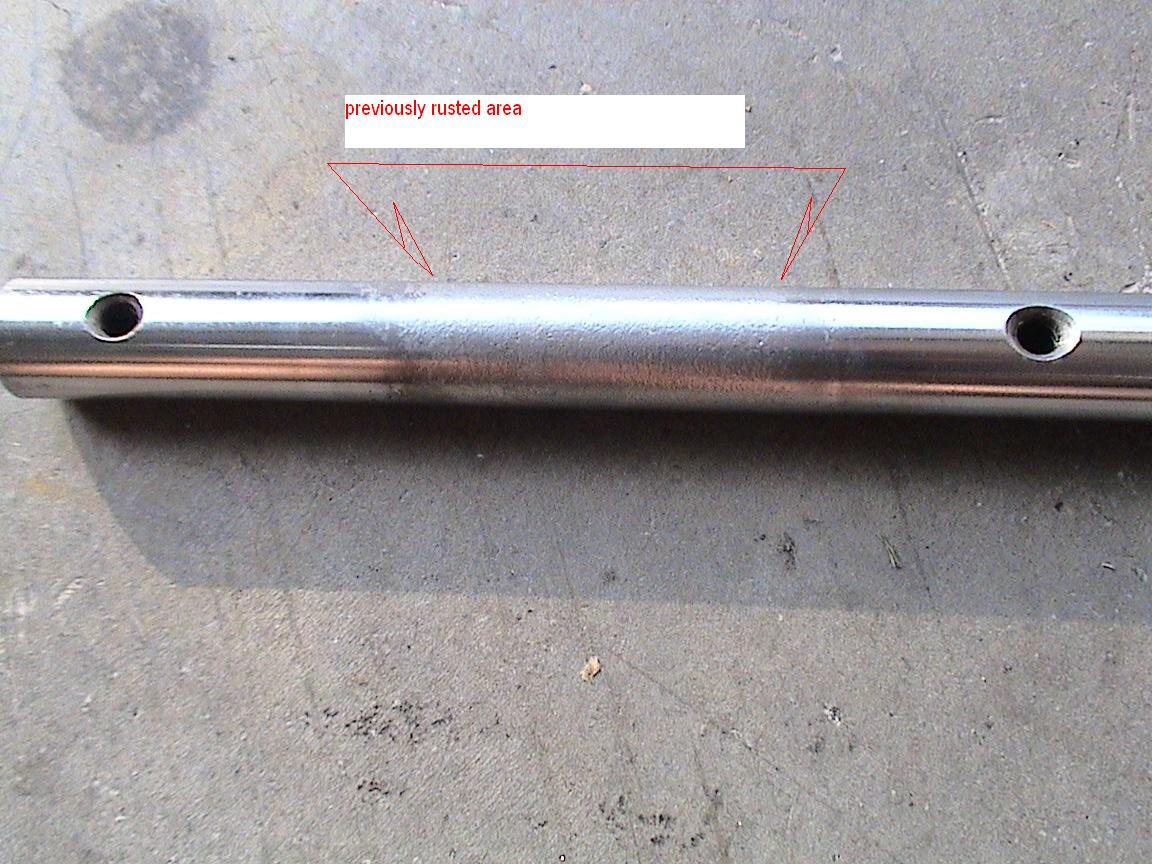 This shaft is from a bank of CB550 carbs. The exposed area between the carb bodies was rusted pretty bad in one area and slightly in another.