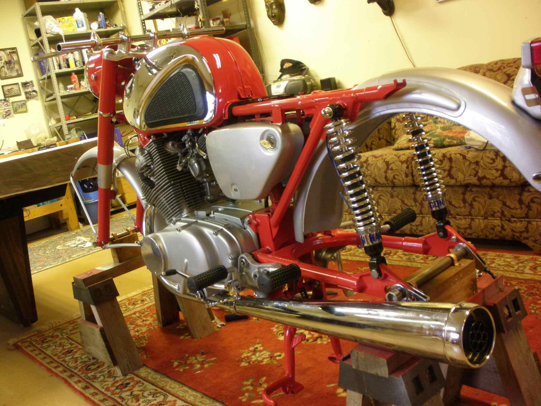 maia wrote:Moving along... new rear wheel in place with alloy rim and a tire (Avon) that looks too big to me , 400X18 but I'll see when I can bounce up and down on it. Seat is in the shop getting new rubber and cover and I'm hooking up the wiring. Last big piece is the front wheel and having a hard time tracking down a 160X18 alloy rim but will keep looking. Motocicli Veloci has the correct ones but I'm still trying to figure out how to order from them....