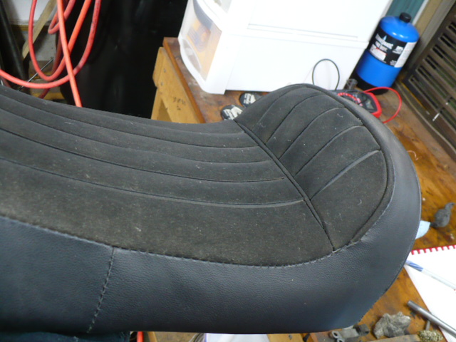 The center section will be made with Alcantara. This is the closest modern day equivalent of what was used in the center of the OEM seat. Alcantara is stain and fade resistant. It's also mostly made of polyester so it holds up to the elements well. We clean glue stains off with lacquer thinner so I would guess it will hold up to gasoline just fine as well. The original was heat pressed with the underlying foam to make the pleats that you see in the pictures. Heat pressing does not work with Alcantara, but I will be replicating the look as close as possible with some tricks I have up my sleeve.