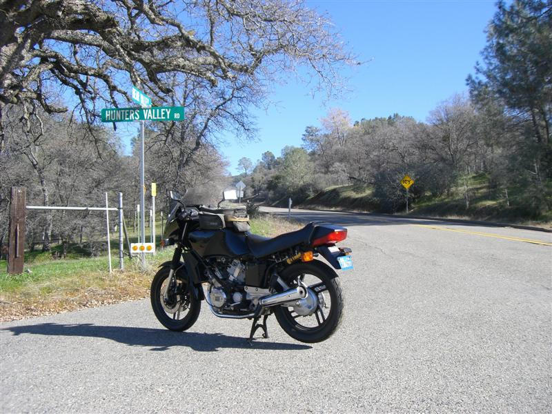 Hi Vince and Gun. I'm in California, Gun, you picked up on that road sign! Good work! The picture is taken at the intersection of Bear Valley Rd. and Hunters Valley Rd. looking East, it is a very steep climb to the top and then a decline to the small town called Bear Valley. the next picture is about a mile North of Bear Valley, at the look-out over the canyon with the Merced River, just a little after it flows away from the Yosemite Valley. Hwy 49, is called "The Little Dragoon", in this area, it is a 16 mile run from Bear Valley to Coulterville, the next town. I live in Turlock, and this the perfect short loop for an afternoon's ride. A lap is only 110 miles. As you can see I much rather go riding than stay home and rebuild bikes, that need it, like my Super Hawk. Thank's for the reply, Dave