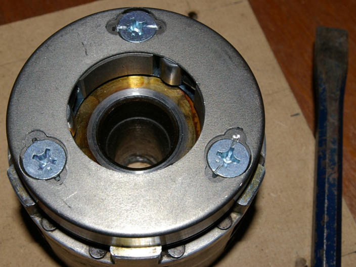 When I pulled the rotor I didn't like the looks of the starter clutch outer--the steel shell was badly cracked and pieces of it had broken away and disappeared somewhere.