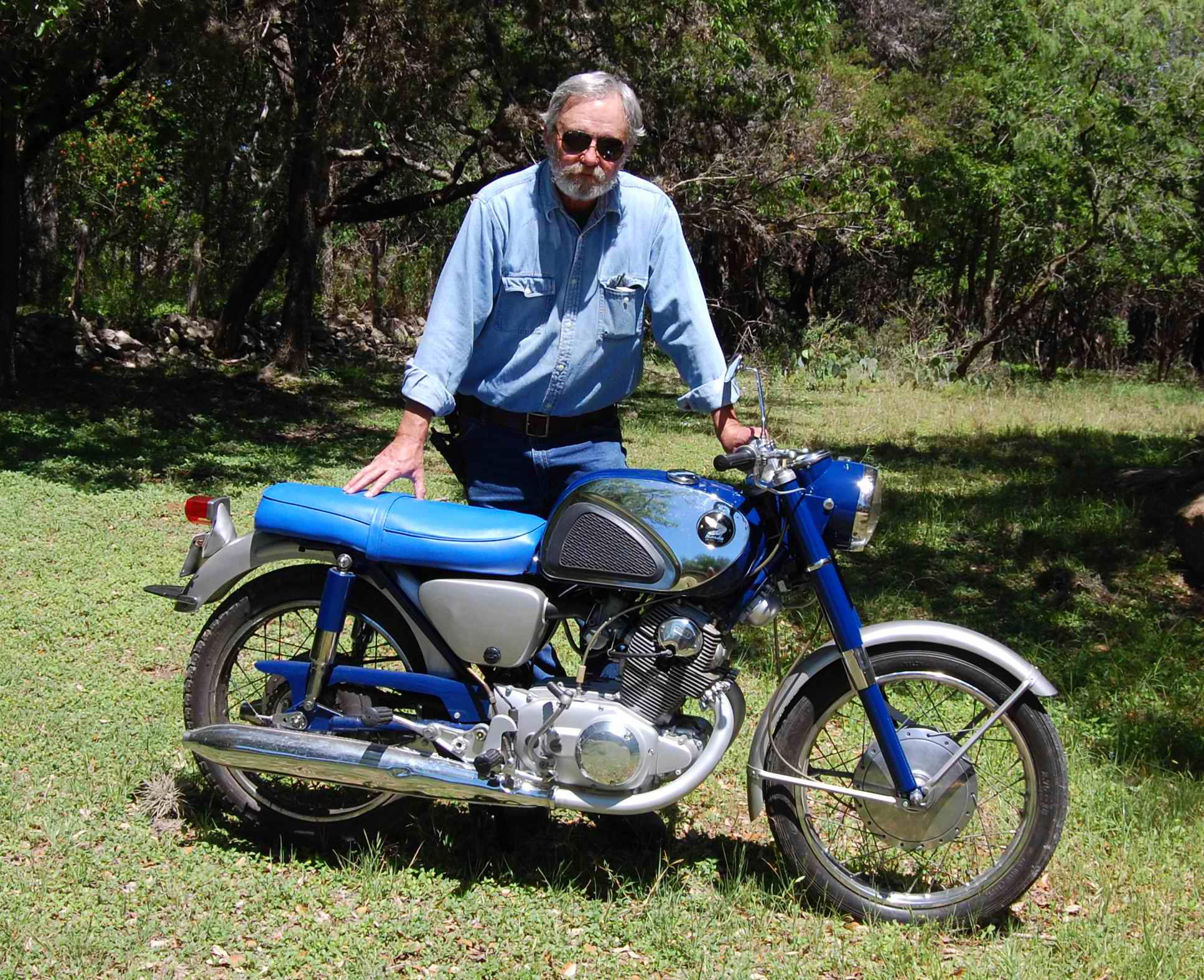 So, for around six times what bike originally sold for, I’ve got an essentially mechanically new CB77…rebuilt engine, transmission, carbs, brakes, front forks, rear shocks, seat (a little lumpy looking but sits good), greasy wheel bearings, fork bearings with three new races, lots of new ball bearings to replace those that ended up under porch. New sprockets. New handlebars and levers. More or less trued and well balanced wheels. New tires and battery. Plus a shiny paint job that looks better than when I bought the bike at one year old. I’m so happy.