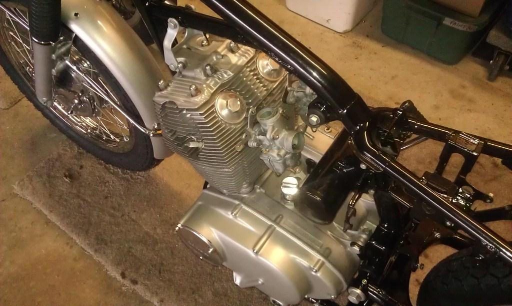 More progress made. I have the carbs all put back together and on the bike. I also have the brakes mounted and a few other things done. I am currently working on the wiring harness. I had three of them from bikes I had torn apart and in the process of making 1 good one out of those three.