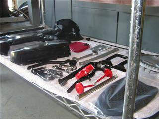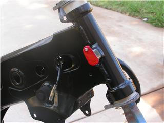 I have also included some pics of the shocks that were about to drive me nuts. I re-assembled them, taped off the chrome, sand blasted and painted. I know that the logo is in the wrong place, but I re-colored it and thought it would look cool behind my solo seat. I have another that I will put under the headlight.