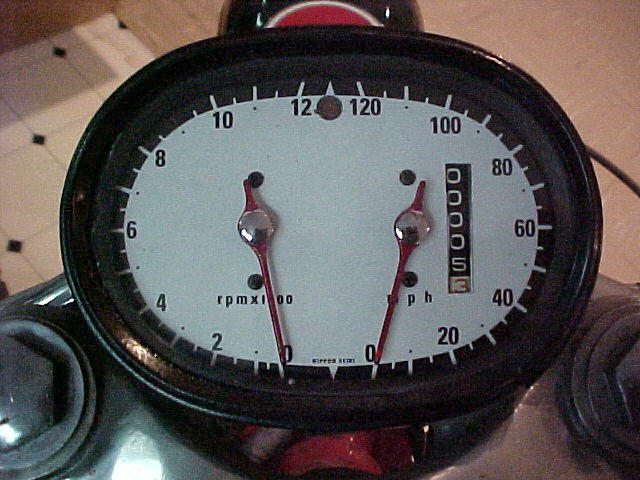 So, I got the white faces, and some more black ones printed up. I've reassembled the white face for my Cafe' bike. I just really wanted something one off for it. I was going to do the needles in black, but I thought it reall needed some red, so I painted needles red. here's a pic of it intalled in cafe bike.