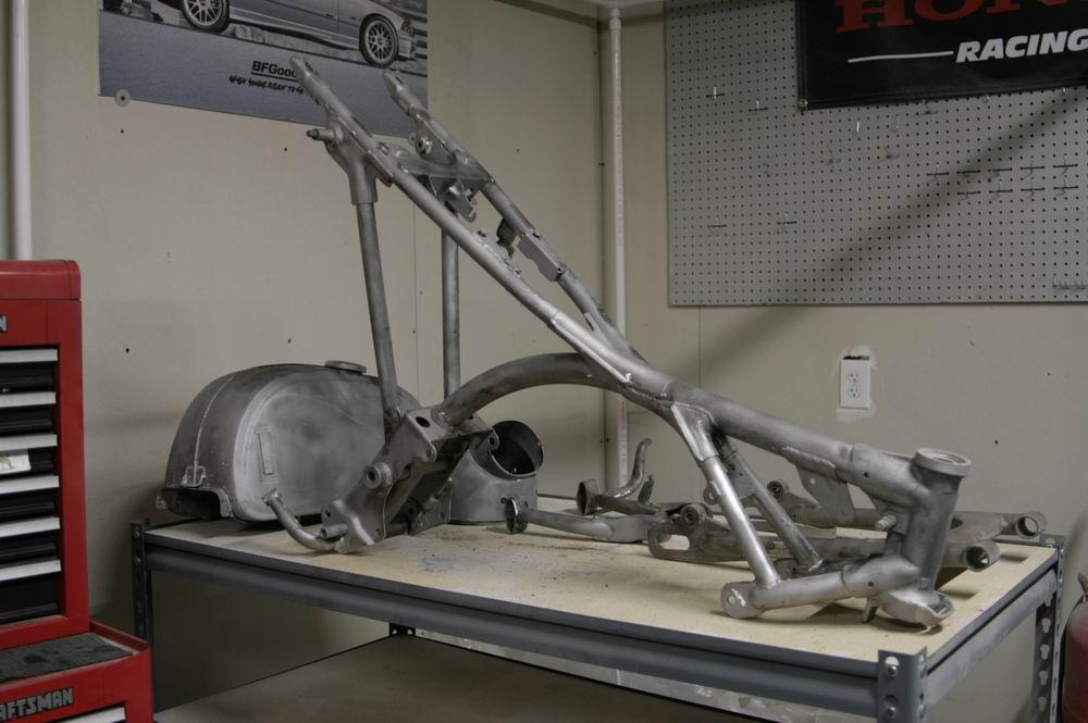 12/12: The powdercoating is done! I powdercoated the frame, swingarm, center stand, headlight shell, bottom triple clamp and the tank bracket. Looks like a great start to a cool project!