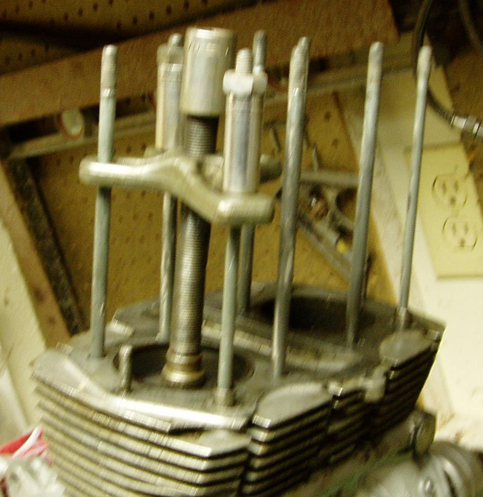 Thanks everybody for the great input and photos; I believe my pstons are, or appear to be (of Course! ) at BDC, so yes, that's going to make it a lot more interesting...I was thinking that, since it seems I'm going to be splitting the cases anyway, I was going to attack the problem from below...essentially take the engine apart Around the pistons and eventually leave myself with just the cylinder head and pistons hanging in it; might make it easier to press out, but believe me, I'll probably try everything you guys mentioned first...I have the type of engine that both pistons move in unison, so that makes it all the more fun, so to speak...either way, I believe it will be a buckin' fitch...