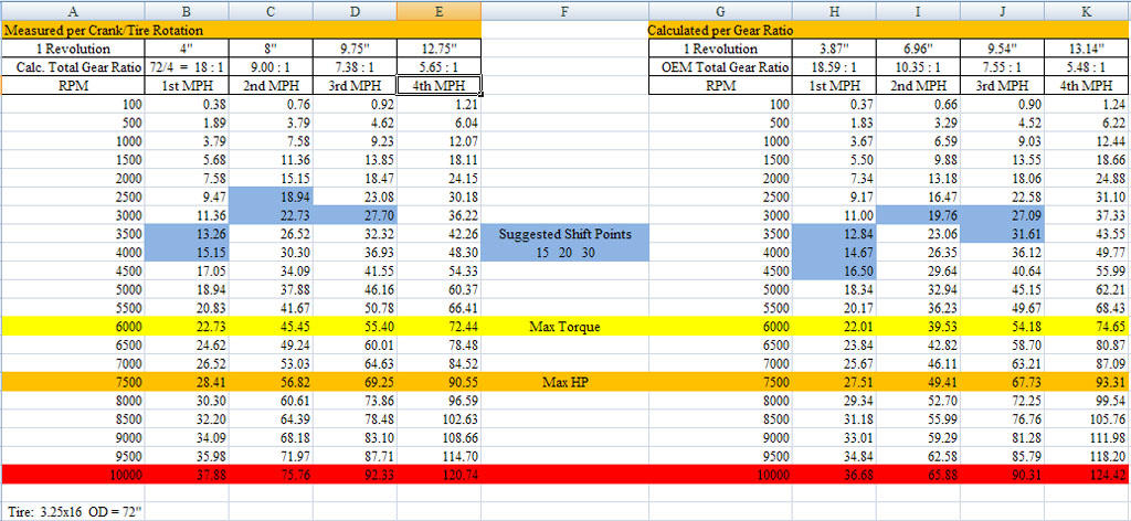 As far as RPM/MPH I have absolutely nothing to contribute to the conversation as i bought my bike last November and I still don't have it running! I'm coming around the bend, though- hope to have it out at least a few weekends before the first snowfall.