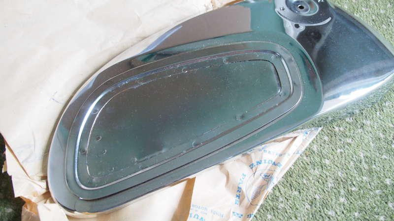 The C70 tank was coverless, but you've got an early 60's C72 tank, which would have the covers. I like the idea of taking off the knee pads and rechoming. I would then mask off the knee pad area and bead blast that area to give it a frosted look....