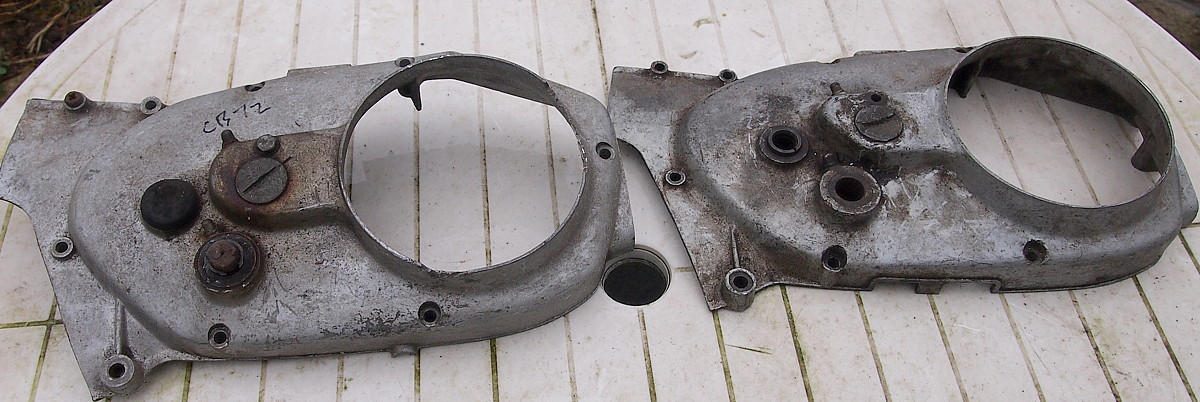 If you compare this cover to the next generation you will see how light weight it is around the kick starter shaft boss. It's very rare to see one not cracked. The early cover also has the thinner clutch cable adjuster that's located 1" toward's the rear. What number is it?