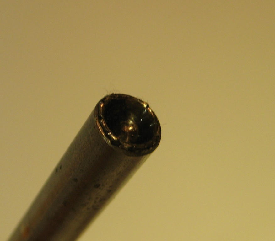 I'm looking at a spare, used rod and I can see a dimple about 2mm diameter from contact with the ball, and I also see where someone has ground the end (maybe to get rid of the dimple). I can't use this rod because it has pretty deep grooves in it from the seal and is 246mm long and probably under spec. (I will have to check the wear tolerances and then check the lifter rod that is currently in my engine.