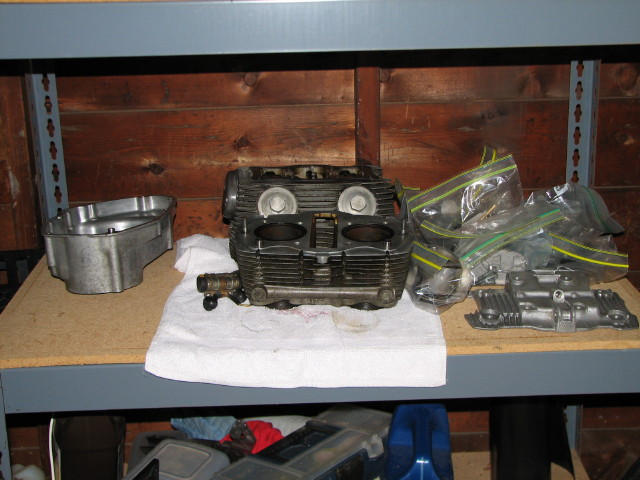 So far the work has gone well. Cleaning and rebuilding the carbs took a couple of evenings last week, and now I'm taking the motor apart, cleaning, inspecting, tagging and bagging each piece. Some PO has been into the engine before and clumsily at that, evidenced by stripped screws and dings and scrapes around the fasteners. I think he used an air impact wrench and was not an expert. Thanks to PB Blaster, a hand impact driver and application of a little heat, all the stuck screws came out, but they will all have to be replaced as will the acorn nuts.