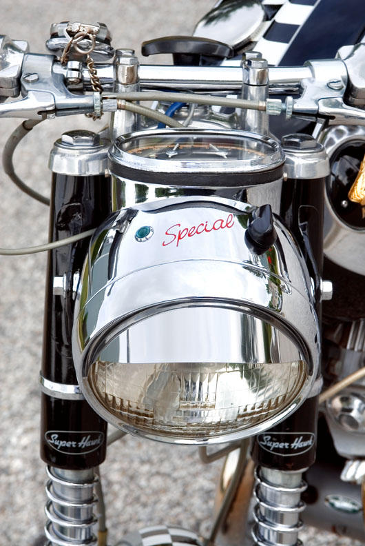 Norton, Triumph, BSA, Royal Enfield -- how could I forget Matchless? I had my good friend Lee Hulteng, who is a master artist and motorcycle enthusiast, add hand painted red coach lines to both rims. Very sharp!