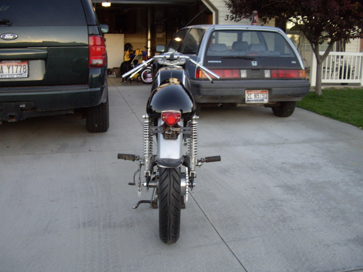 deez - I am using Excel shouldered aluminum rims, 2.15X18 in the rear and 1.85X18 in the front. As for the tires, they are Avon Roadriders, 100/90X18 in the rear and 90/90X18 in the front. I got the rear wheel finished, and it looks great mounted on the bike. I took some more pictures, but outside this time, and they look a little better, albeit a bit out of focus. Now just to strip it down all the way and powdercoat the frame and paint the fenders, sidepanels, etc. I sure can't wait to get this bike finished, especially since I was only able to get in a few rides before it lost spark to the right cylinder, and it seemed like a sign to go ahead and fix her up.