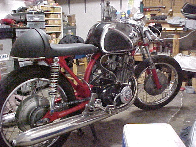 Dave, The cafe/race bike looks great! It reminds me of the project I have buried in my shop,and makes me feel bad I haven't found time to get to mine. Good luck with your project. BTW Classic said 520 was the right chain for a CB77. Does he mean a racing set-up? cause it sure as hell isn't stock . Then again I always thought 530 was over kill too. Steve(kustommusic) Greer