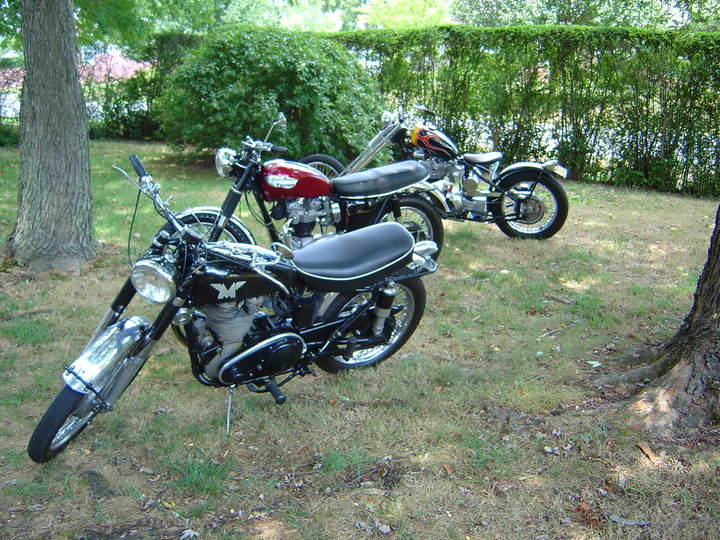 What a nice collection of vintage British iron you've got there. What's the story with the chopper, btw?