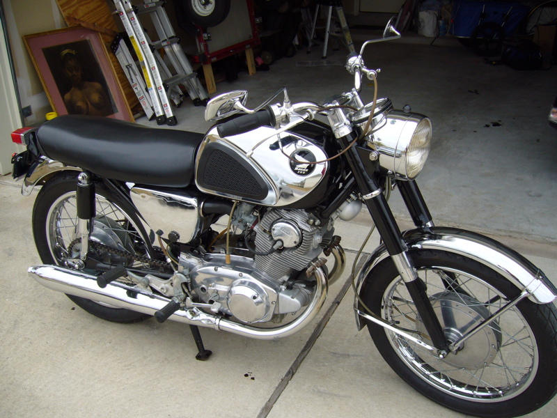 The CB77 was a nice bike. It was built stronger than the CB350 twin. The 350 has a nicer look and fit but vibrated terrible at 60 mph. The neatest CB77 I owned had a 300 dream engine in it. I can still visualize the first 300 dream I saw. Ray, from up the street, had a new one. And me I had a Sears Sabre 50cc POS. Bought a CB77 as soon as I could. Back then a 305 was considered a BIG bike.