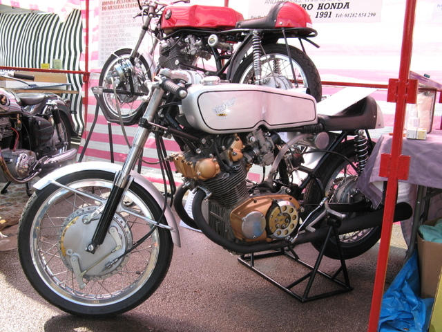 I was at Mid-Ohio two years ago, and there was a CB77 with a CB750 engine shoehorned into it, so I guess if that's possible then anything's possible.