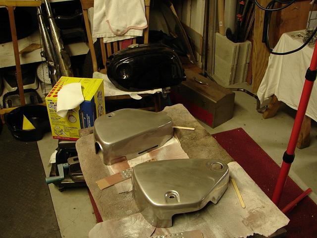 I do have one of the simple blasters where you hook it to the compressor and put the hose in a bucket of medium and blast merrily away. Works OK but of course you cant use it in the basement, and there was a foot of snow just outside the basement door at the time. (Actually you can use it in the basement, but there are domestic considerations.) I think I will use it to redo the sidecovers when the weather improves and I can do it outside.