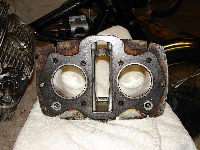 I pulled the head and cylinders and everything looks good. There is a little varnish on the top of the piston, but since it was only run up and down my driveway several times in probably the last 20 or 30 years, I am not worried about it. Also note the pic of the cylinders. They are nice. I am sure I will need a new head gasket since there was some sort of oil leak on the front of the cylinders when we ran it. As far as I can tell it was leaking at the front just under the exhaust and toward the center of the block.