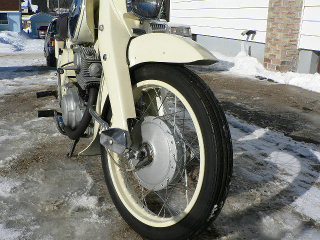 Found this in an overgrowen orchard covered with a tarp. All complete except lower chain guard and mufflers. Every bolt and nut was removed in the restoration process including engine and trans. Serial # C78- 40024 Engine, C77,E40024. Bead blasted frame and engine. All paint is from rattle can. Undercoated and finished with recreational white. Exhaust high temp black. ( am still looking for proper mufflers ) Built bike using super hawk running gear that I was not restoring. Had to make small mod's to do this. Have shortened seat 8 in. and recovered by NU-VU in Marathon Ontario. Paul did a wonderful job. You can contact him at 807-229-1681. Approx. under $700.00 CDN to restore.
