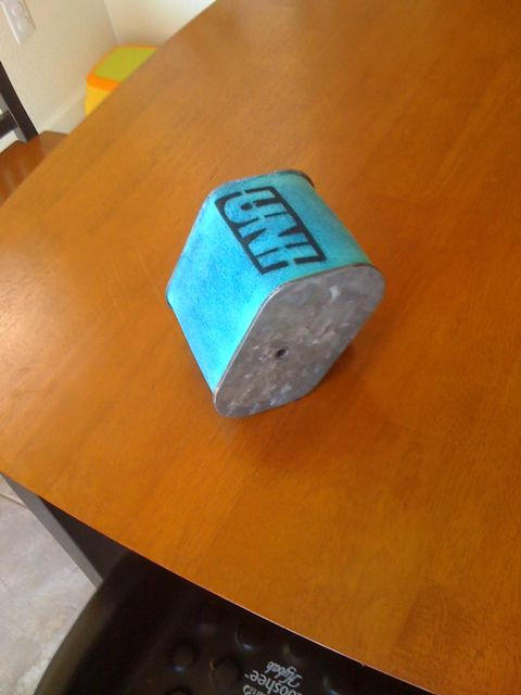 I had the original air filter, but most of the paper had corroded off and the wire mesh was bent up. I tore off the rest of the paper element and ground down the epoxy to metal. I then purchased a green UNI sheet filter for $13 and cut it to size. I then hot glue gunned it all the way around. I then worked in some filter oil. Now that I think about it, that might have been a dumb idea to do that since it will be difficult to clean. Oh well, this should hold me over until I get some more money for a "proper" solution. Or, I may just stick this out. I think it came out pretty nice.