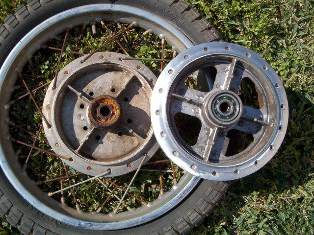 Getting around to chroming my rims and replating the spokes. The rear hub taken from my '64 CA77 had "cutouts" and the corresponding rubber dampeners clipped in. My '65 CA77 had a solid hub (no cutouts) and the dampeners pinned in with nibs molded on. Took apart my '63 CA72 fr and rr wheels this morning to remone the spokes and the rear hub had no cutouts but was solid like the 1965 CA77. My guess is that the rear wheels (and therefore the hubs) at some time were swapped since all three bikes came from the same person. Trying to get the correct parts back into the correct bikes. The hub with the cutouts originally came on the '63 CA72 and there was a change in '64 to a solid ,non cutout, hub for the '64 and '65? Comments? Pic attached