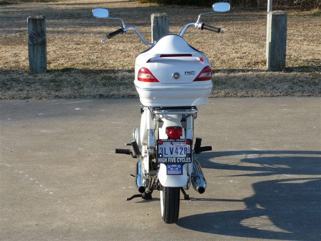 Hey Guys, I bought this really nice universal fit bike trunk for my white 305 on Ebay just over a week ago. What's really cool is the built in backrest and the lights can be wired for both turn signals and brakes. The seller has this model in black and I believe silver as well. Check out the pics!
