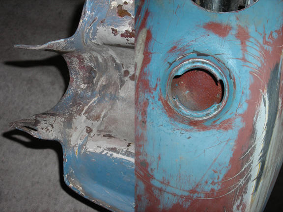 Prior to picking it up, talking to him over the phone he warned me that the original tank was not available now. He'll try to get it back, but I don't really expect to ever see it. The tank he has on the bike is what prompted me to write this post. When I first knocked on it it sounded like it had a fair amount of Bondo in it. looking into the tank I was surprised to see it was a fiberglass tank. Were these available from the aftermarket of the time? I'm hoping somebody can fill me in on who made this tank.