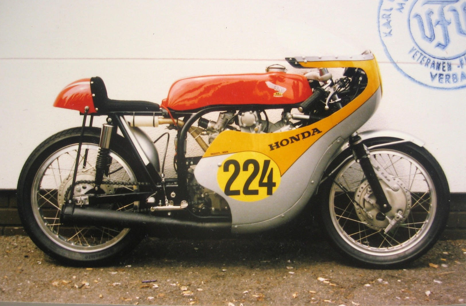 Here are several photos of a vintage roadracer with a Dieter Busch frame and a CR72 engine, once owned and raced by Horst Seidel of Germany. The engine is now in a correct CR72 frame in Holland and the frame with a CR77 engine is in a private collection in southern California. Interestingly, the frame has two tubes that cradle the engine like a CL77, but, to allow easy removal of the engine with its huge cylinder head, the lower left cradle tube can be removed by unbolting. --Randall
