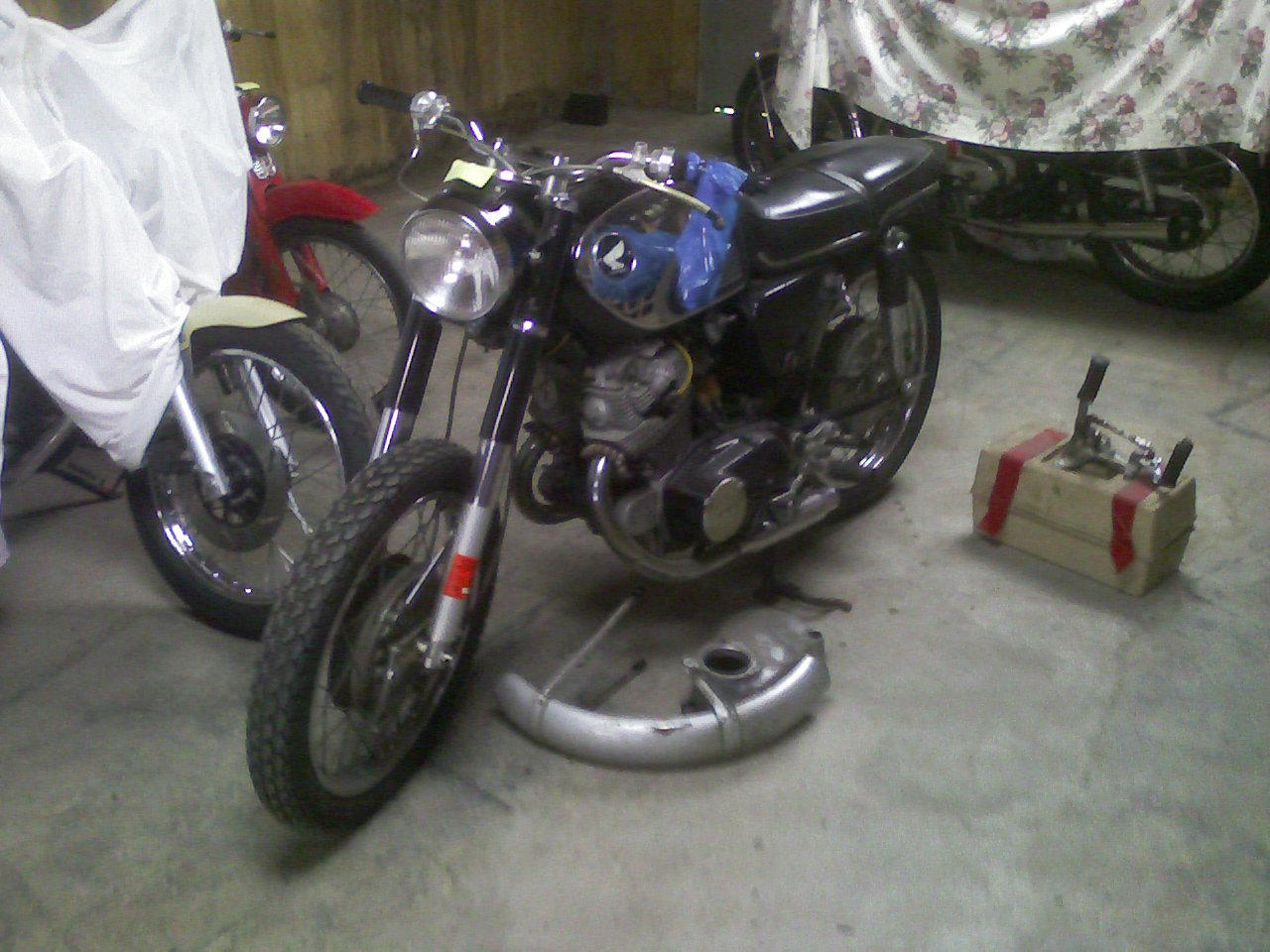 I have been making a little progress on the bike. After much research and a fist full or two of cash I am nearly there. I have some final paint on the tank and side covers and a seat to sort out. I had the bike running in the spring but only on one cylinder which I have since tracked down to a plugged jet. I think the engine should be good to go but haven’t fired it since cleaning the jet.