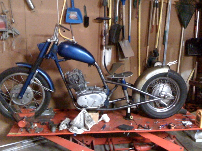 First, thie bike is a 1968 CL77 that was chopped and bobbed back in the 70's. A lot of non stock parts were used and a lot of stock parts were discarded. The bike is now getting re-chopped, streched, re-bobbed and hard-tailed currently.