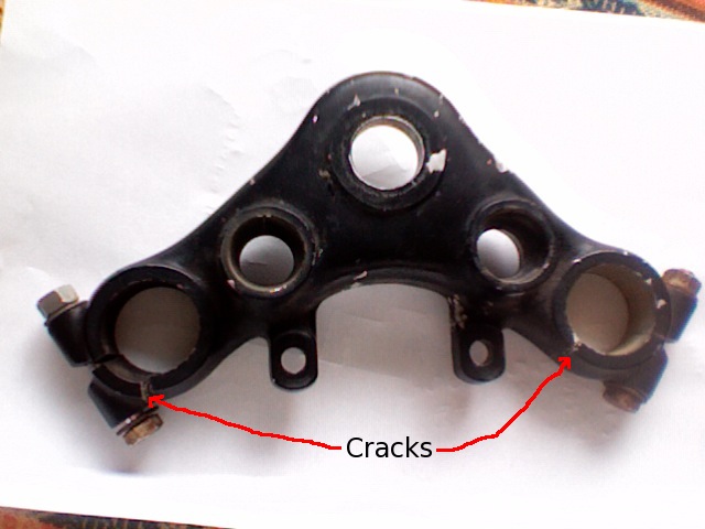 The triple tree top clamp has a crack on either side, probably caused by the snug bolts, and when i went to order one/find one on ebay, it has come to my attention that the part I have doesnt match the manual or the old microfische at my honda dealer...