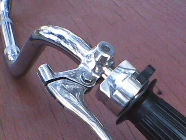 First pic below shows perches buffed and not, side by side. Next will clear coat everything and spot touch paint the small rust spots on underside. I am happy with decision to rework the bars. Will keep the aftermarket Grand Turismo grips...my 750 four had them and I like them.