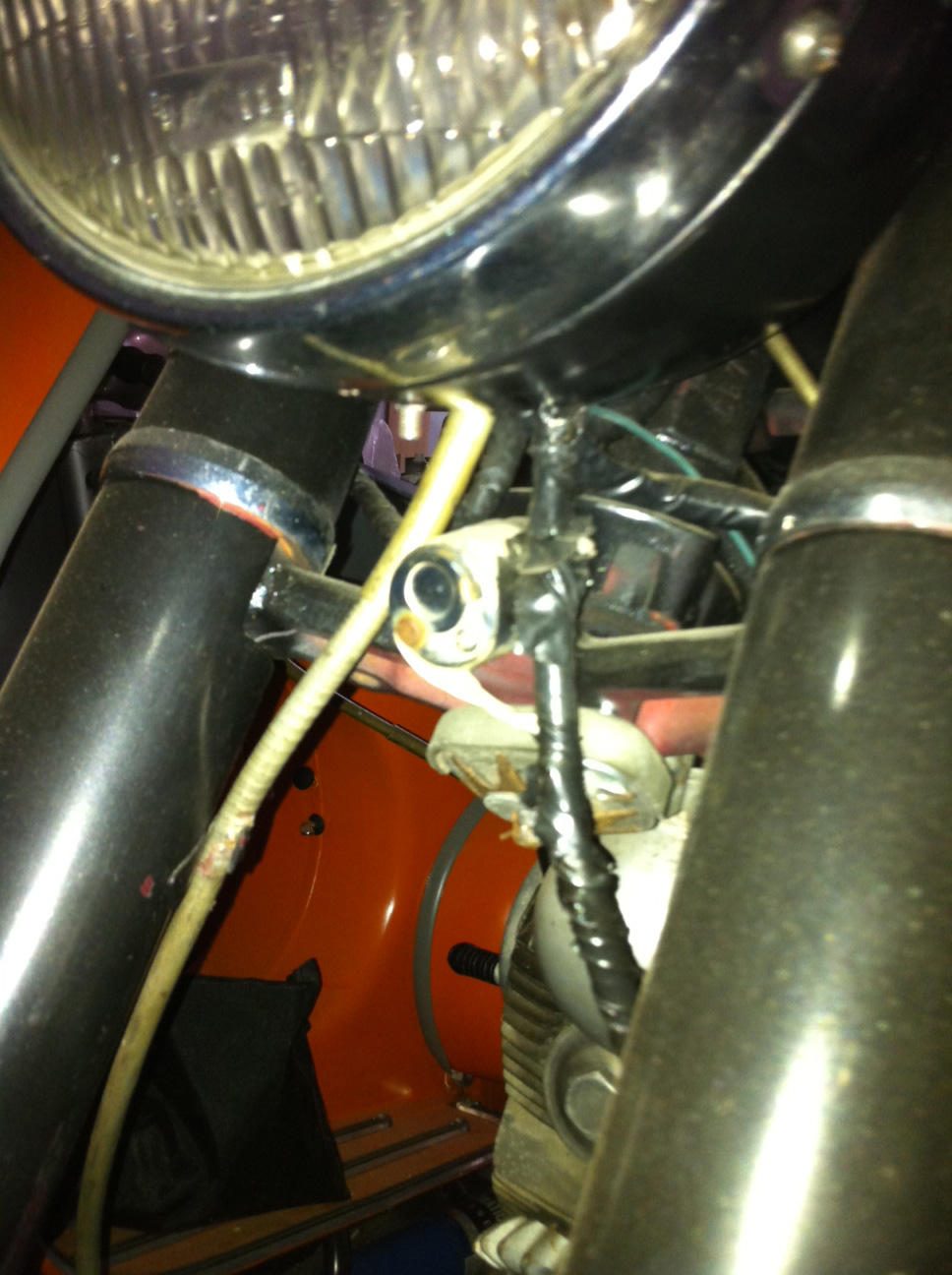 The bike had been repainted at some point, with what looks like rattlecan. There are some noticeable runs in the paint in the headlight bucket.