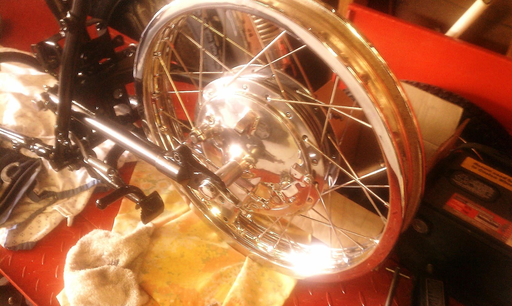 Hey Rookhill, I just had my rear rim chromed, replaced the spokes/nipples, and had the hub polished. All went well with the exception of the center part of the hub. The polisher couldn't get into the grooves but the sides came out like glass. When I got the part back, I went to LOWES and bought a couple of brass wire brushes that fit into a drill, used it on the center groove section and then coated the entire hub with clear lacquer. I have the pieces back together and it really looks nice. Don't know how fussy you are with your project, I kind of want mine to look factory or a little better. Will add some pics so you can see the end product after rechroming, polishing, clear coating, wire brushing, and adding new stainless spokes and nipples. It will take a few minutes to go out and take some pics and download them to this site. By the way, cost was about $400 for just the rear wheel to be brought back to my satisfaction.