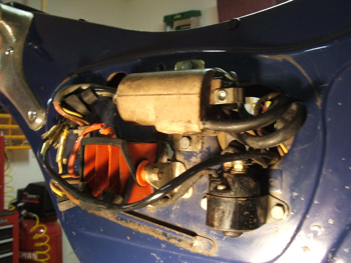 Thanks for the help! The engine is free and turns over when using the kick starter. When grounding the yellow/red wire there is no clicking sound from the solenoid. There is juice going from the battery to the solenoid and the yellow/red wire going from the solenoid has juice, BUT the second black wire going to the starting motor doesn't have juice. So how do I get electricity to the starting motor via the selenoid? In the past I have ran a cable from the battery to the wire for the starting motor where it contacts the solenoid, I then only have to connect the two contacts on the solenoid and the starter starts to run. This proves that the starter works, but there has to be a switch somewhere that dictates the flow of electricity to the starting motor.48lesco wrote:Hey I think you're on the right track! What you did should have spun the starter motor, but apparently didn't. First of all, is the engine free - can you turn it over with the kick starter? If so, check whether or not the starter solenoid under the right side cover is actuating. You should hear it click when you ground that red and yellow wire. If it doesn't, use your wiring diagram to trace its wires back to find out why. If it does click, then check to see if you're getting 12V at the starter motor terminal. If not, you may have corroded contacts inside the solenoid, or even a bad connection at the solenoid terminals. If you are getting some voltage to the starter terminal, you may have a bad starter. Check to see if it spins when you turn the engine counter-clockwise with a wrench on the dynamo bolt. Check back with some more info... Good luck!