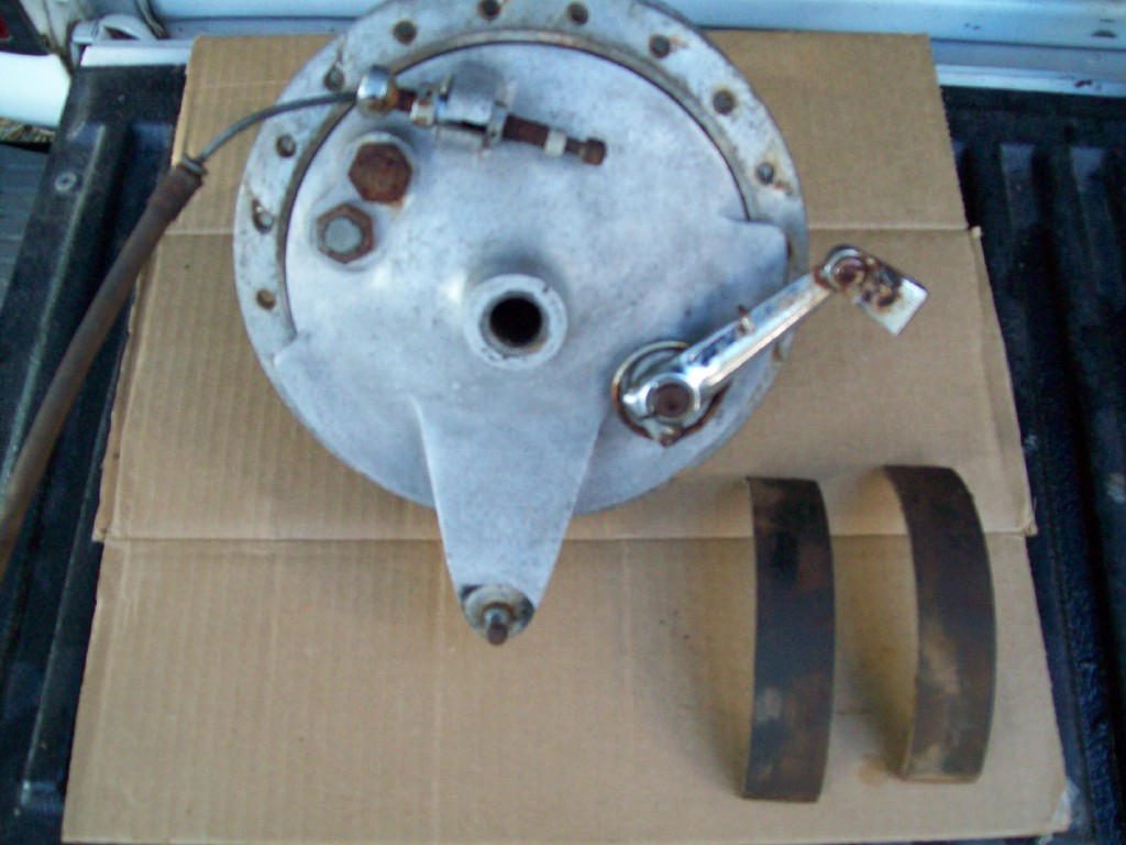 For sale - '63 CL72 rear brake hub, sprocket & axle. The brake lever is frozen but will loosen with work. Needs to have the brake pads glued back on. Includes the sprocket but the sprocket nuts are missing. $70.00 & shipping for all.