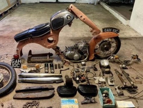 I was in the process of rebuilding a triumph for a friend when it turned up so progress will be intermittent but, in between work on the triumph I’ve stripped and rebuilt the engine. It was locked up but had the carb had been left on and stored in the dry so I was hopeful that pouring some penetrating oil down the bores would free it off. After a couple of days I put a spanner on the crank and it released it’s grip. Once stripped the bores weren’t too bad and a light hone and some new rings would be sufficient. The valves were passed their best so a set were sourced from Thailand but the rest of the engine was ok. The only other problem was the kick start pawl was bent, possibly by someone trying to free off the engine. I did find one on the net but the asking price was crazy so I heated it up and tweaked it straight. I might regret that if it snaps but figured I’d be using the starter motor most so took the chance. The engine is now finished and sitting on the shelf while a bit more of the Triumph has turned up and needs my attention.