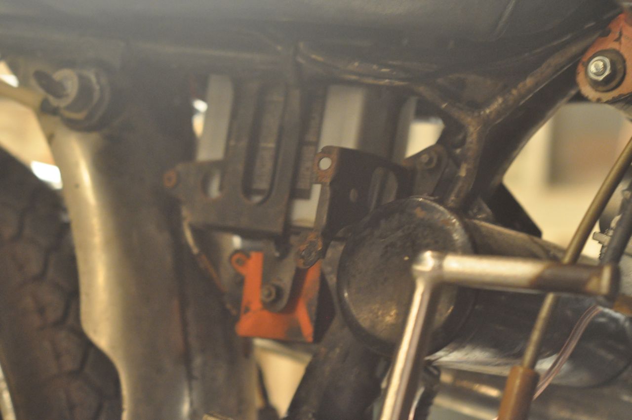 The other drama on that ride home I believe was due to a shot rear bearing. After stopping to refuel, I couldn't even push the bike. Additionally, I could barely get it to do 40 mph. Previously, I had taken the thing past 50 mph. When I got home, smoke emanated from all over the bike. I suspected the rear drum brake had locked up somehow, and touching the hub burned my fingers. After several hours of cooling, the bike pushed easily. That's why I suspect a bearing rather than the brake.