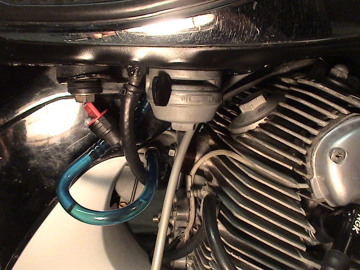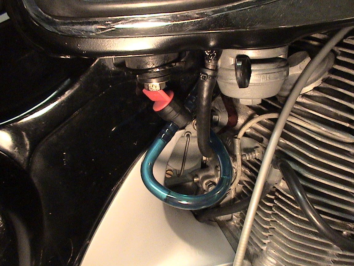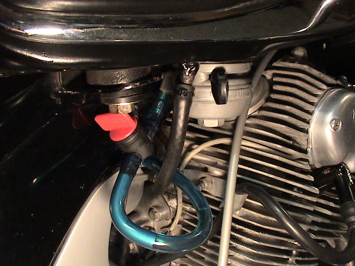 Can someone please post a pic of how the fuel lines are supposed to be configured between the petcock and the carb? It's a pretty funky angle for sure and the clear line I am using would probably kink if I ran it in a straight run.