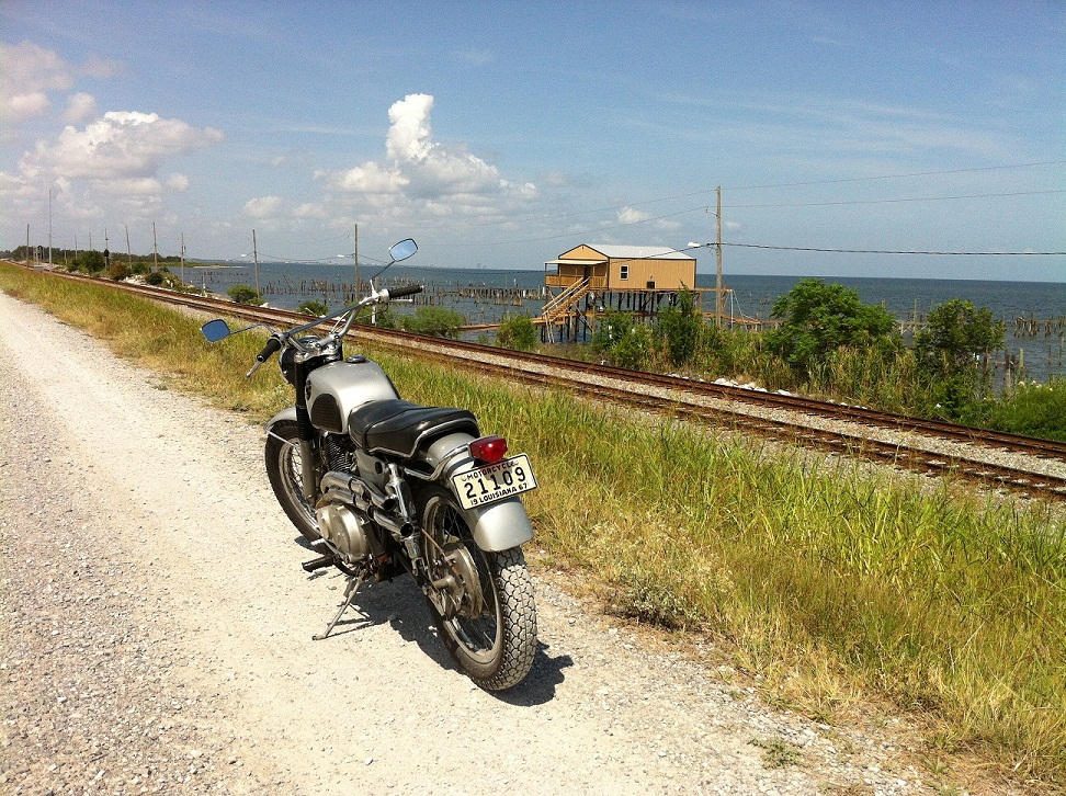 The Scrambler ran great and the K70's hooked up well on the shell road on top of the levee, rode I-10 back for a total of about 50 miles today.