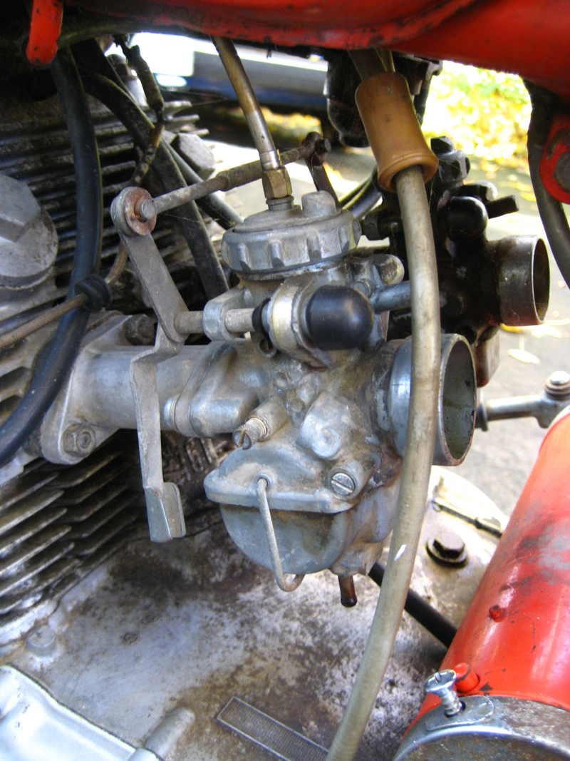 This is my CB160 motor and carbs as I shipped it back from the US. I don't think there is a bend in the Right Hand choke lever. It has to line up with the left one which is straight.